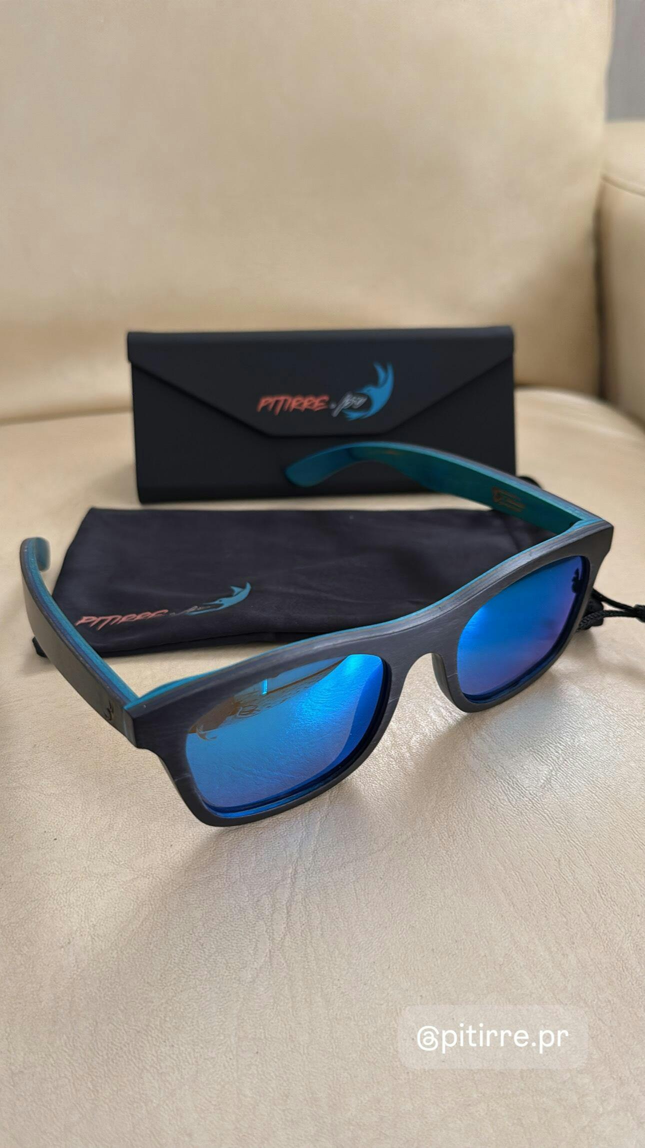 Inspirada en la claridad del océano y en la energía del sol boricua, la Wave – Blue combina diseño único con funcionalidad real. Su montura en madera negra mate con interior azul vibrante refleja un estilo moderno y auténtico, mientras sus lentes polarizados azules UV400 protegen tu mirada con frescura y nitidez.